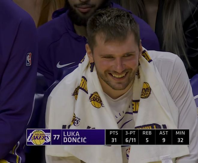 本场比赛他狂砍14分4个抢断,也在传递一个信号,卢卡亲自出手招募过来的这位球员,显然比里夫斯更适合打首发,他的夺权大计已经启动。首先,艾顿现在已经确定了一个湖人首发的位置,东契奇与詹姆斯100%首发,另外八村塁也是一位湖人的先发,毕竟要保证尺寸。